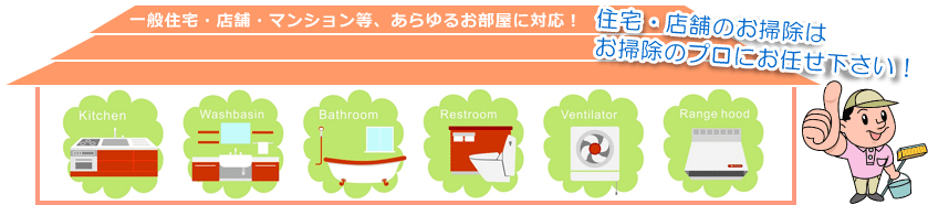 一般住宅だけではなく、店舗・テナント・マンション等の集合住宅等のお掃除を承っております。